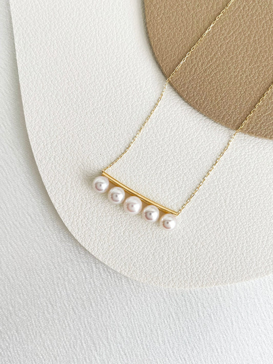 Akoya Pearl Balance Bar Necklace in 18k Yellow Gold