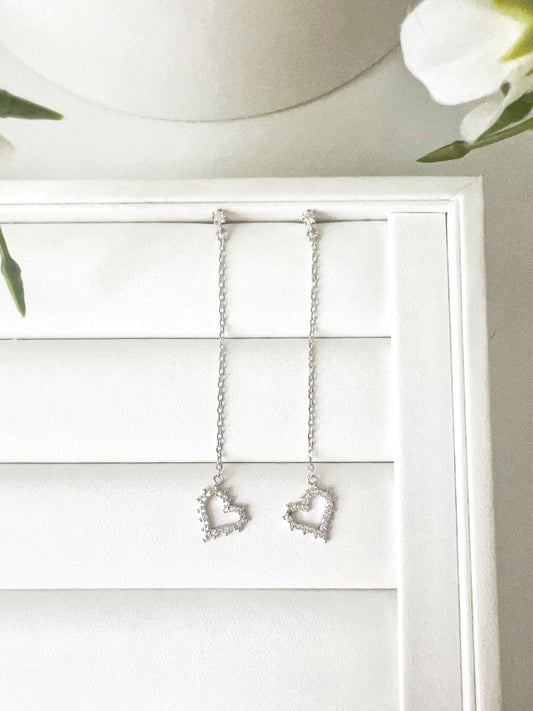 Sterling Silver Heart Shaped Drops Earrings